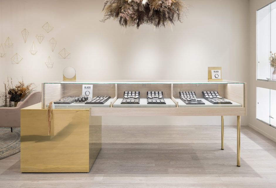 To hold on to the history of the shop the clients requested a number of wall and grandfather clocks to remain, but the old fit-out with its dark timber and navy carpeted floor had to go to make way for the new identity. The set of new jewellery displays counters we designed are open underneath to increase the sense of space in the store while decreasing the sense of separation between staff and customer.